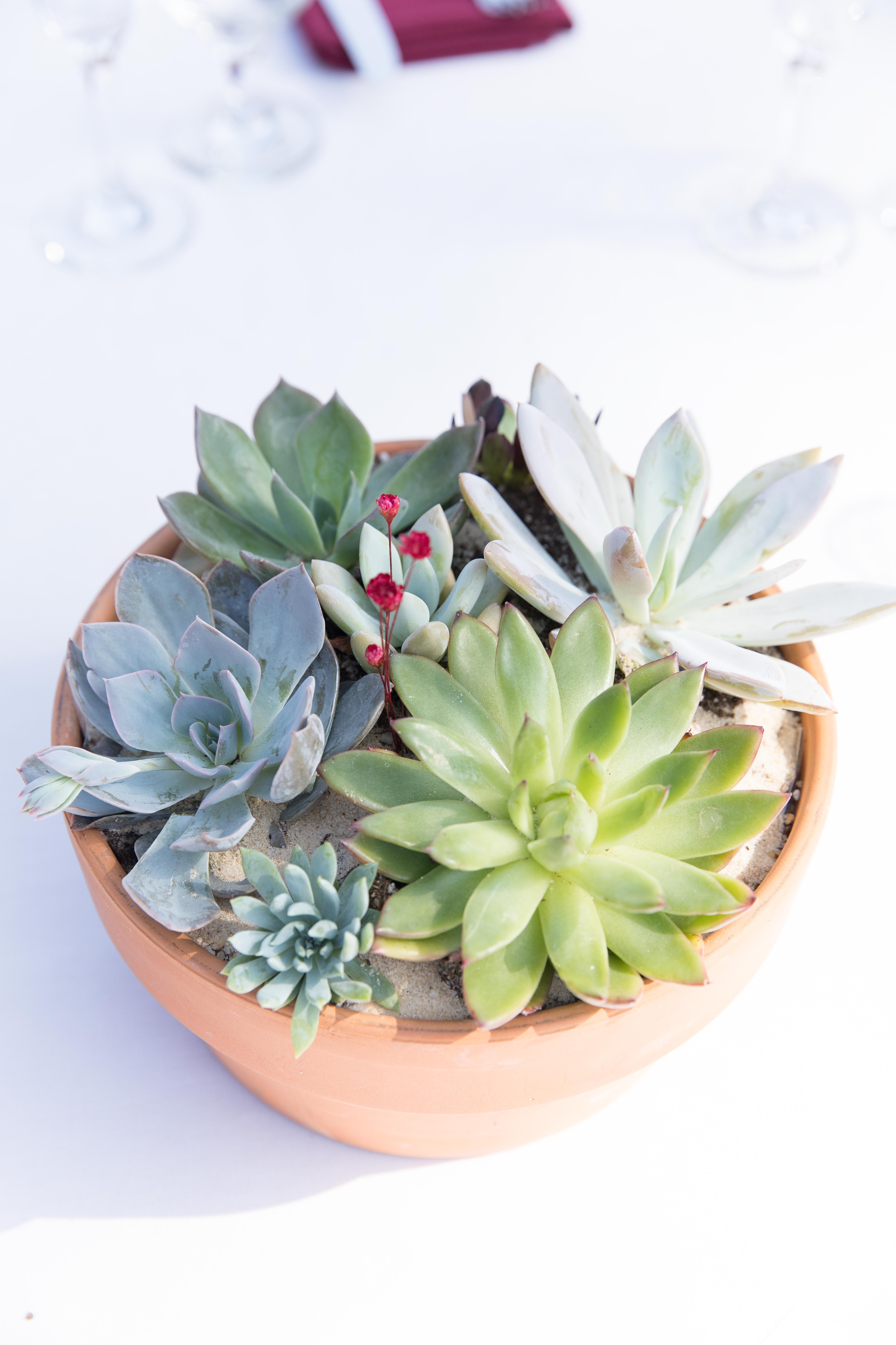With succulent centerpieces and touches of burgundy underneath a canopy of string lights, the alfresco reception took on a gorgeously rustic feel. Kat made a sign with both of their initials that, when the sun set, lit up courtesy of eight strands of fairy lights. The brides shared a touching first dance before cutting into their three-tier wedding cake that was adorned with succulents, and they spent the rest of the night on the dance floor celebrating with the people they love most.
