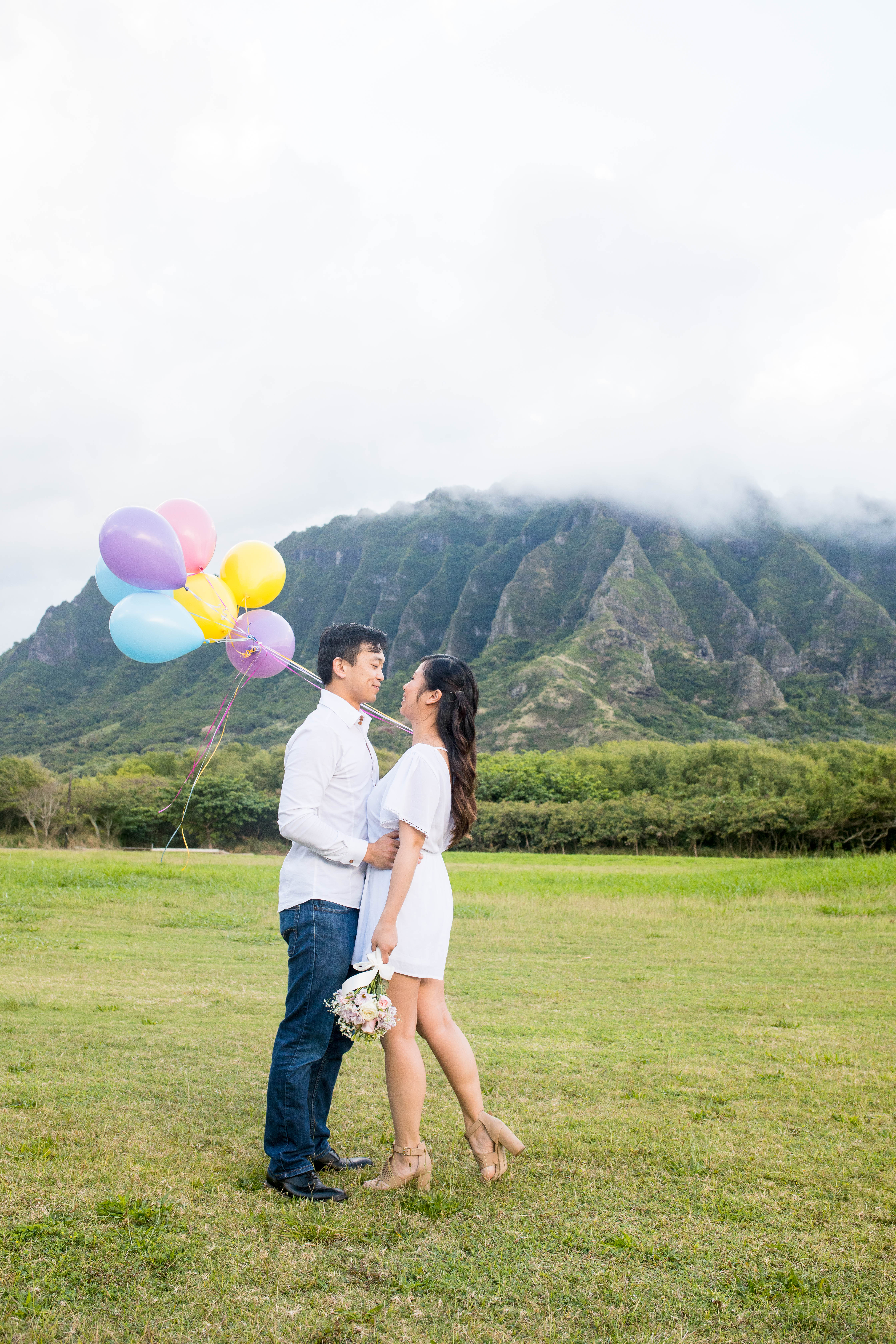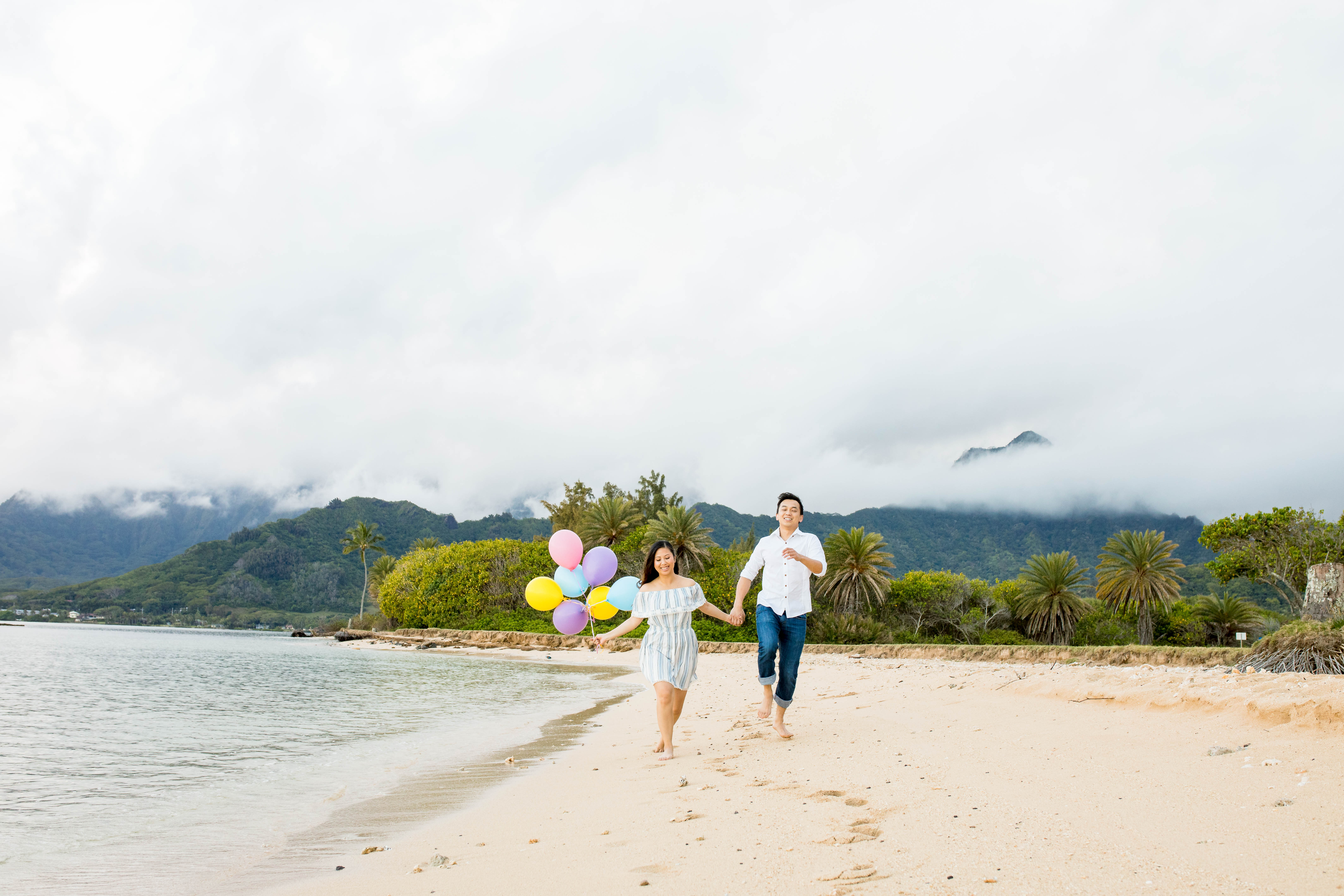 Jenny and John’s Hawaii Engagement took place at Kualoa Regional Park. They wanted balloons, beach and drone photos to really showcase the beauty of Hawaii. It was a gorgeous day on Oahu and the scenery was breathtaking. Are you looking to take your engagement photos on Oahu? Check out my Oahu location guide HERE to help you pick the location that best suits your style.
