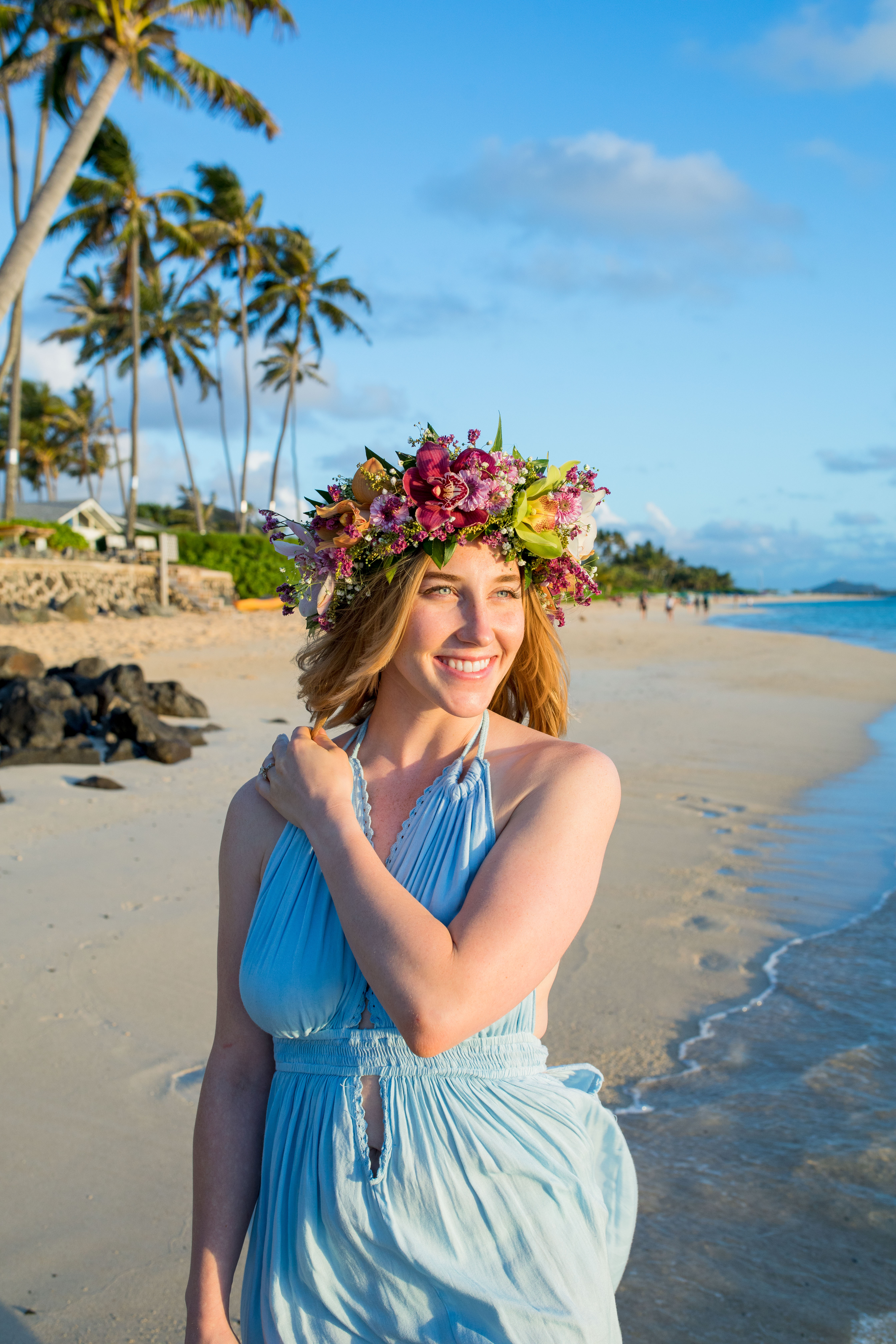 Michael proposed to Maddy at the Lighthouse at the edge of the cliffside at Makapu’u Lighthouse Trail located on the island of Oahu at sunset. Micheal also planned a sunrise photoshoot for them the next day so Maddy could get done up and ready. The Haku (flower crown) was provided by @mealohamade and can be ordered through me or directly through the florist via Instagram.