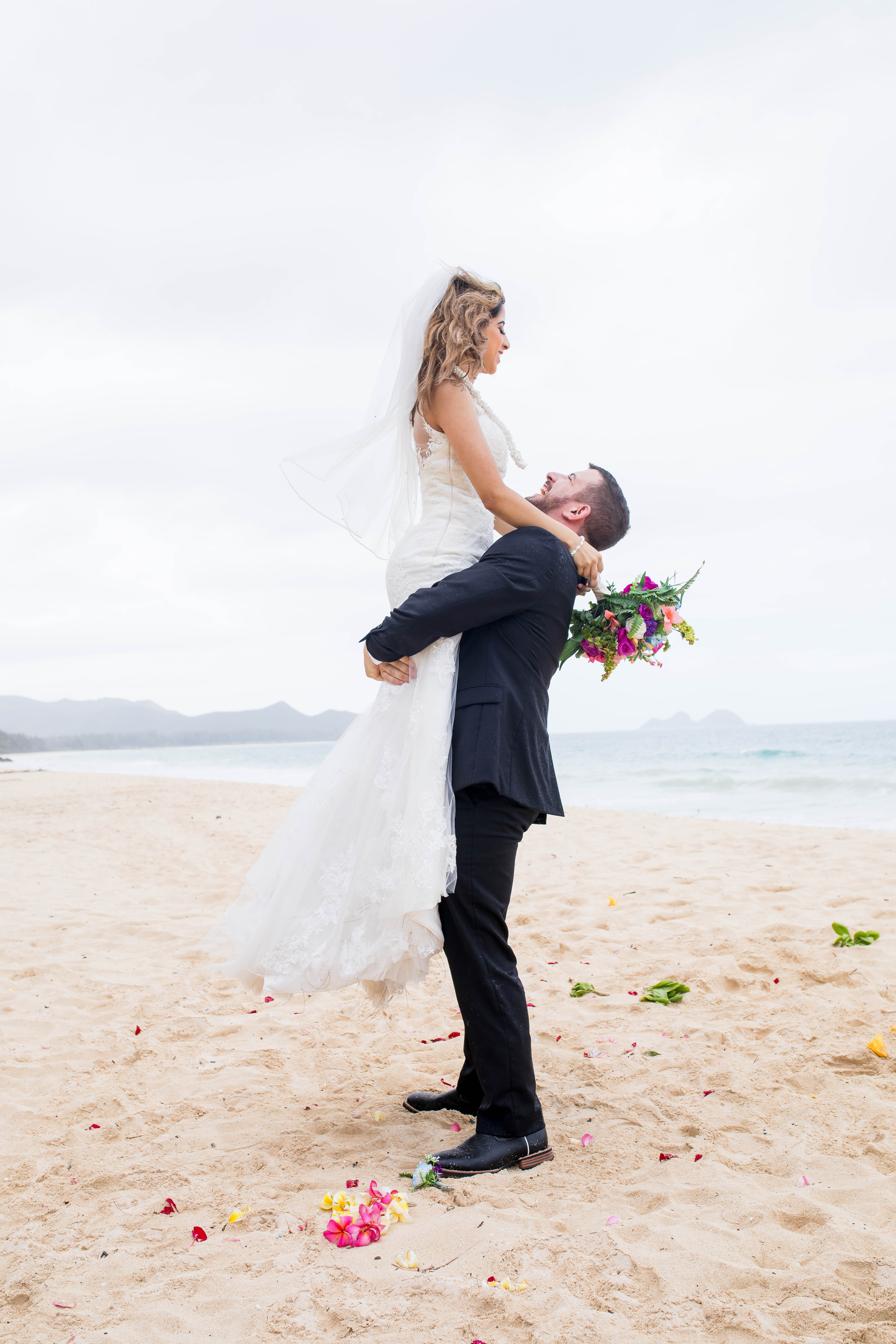 If you are looking to get married on the beach in Hawaii, Sherwood Forest is a great option. Sherwood Forest offers greenery right next to the beach, Turquoise water and uncrowded miles of sand. Sarah and Jake actually did the first look at my house under vibrant green plants, we drove to Sherwood Forest, (which is about 10 mins away from my home). They had a lovely ceremony on the sand and celebrated with dancing, lifting, running and even laying in the sand.