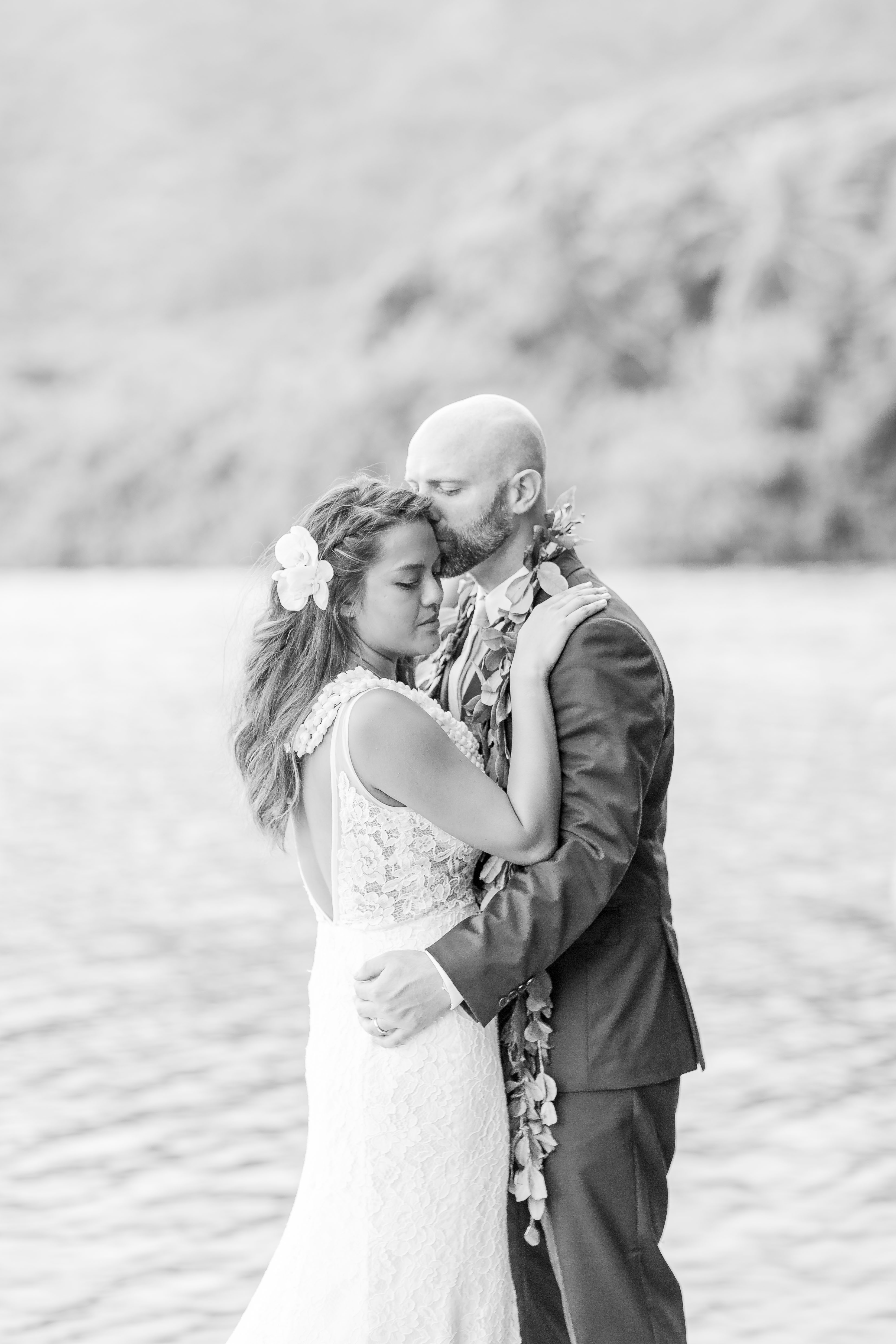 Anuhea and Sean choose to get married at Molii Gardens. This venue is a gorgeous grassy wedding venue located on the water with incredible mountain and water views in Kaneohe, Hawaii.